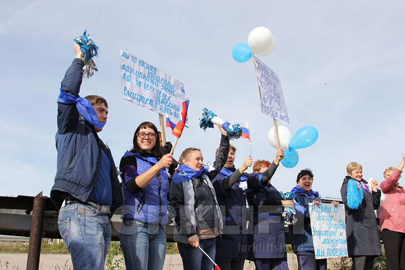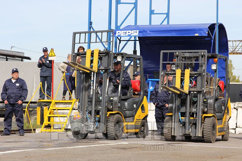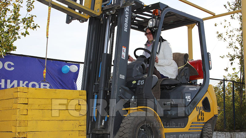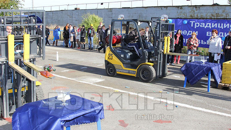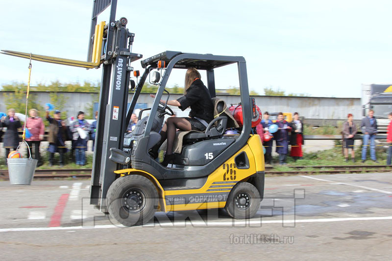 А 24 сентября 2013 года на территории Машкомплекта (www.mashkomplekt.ru) прошли соревнования операторов вилочных погрузчиков. И в этом случае ФОРКЛИФТ выступил уже не в роли организатора, а участника! Две очаровательные девушки, менеджеры продаж вилочных погрузчиков, Анастасия Ябанжи и Вера Прилипка соревновались наравне с опытными, "прожженными годами работы" карщиками! Вера говорит, что "... конечно, мы не работаем на погрузчиках каждый день, но мы, в отличие от многих продавцов на рынке, понимаем карщиков, говорим с ними на одном языке. Знаем требования к эксплуатации досконально, и можем давать общие консультации, ведь, чтобы сдать экзамен в Гостехнадзоре, правила пришлось вызубрить на зубок!"
