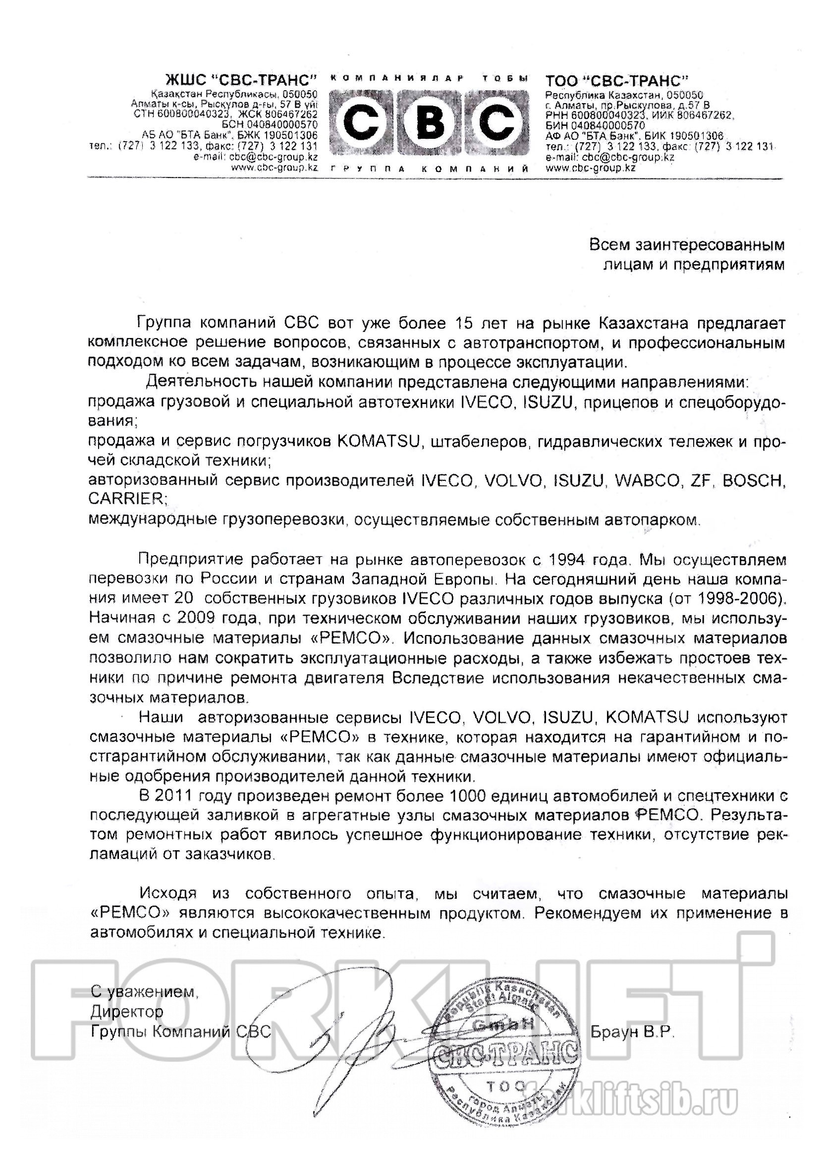 Некоторые крупные компании, как Жайремский горно-обогатительный комбинат (ЖГОК), провели независимое исследование качества масла PEMCO в условиях реальной работы на собственном парке техники и дали положительные отзывы о качестве.