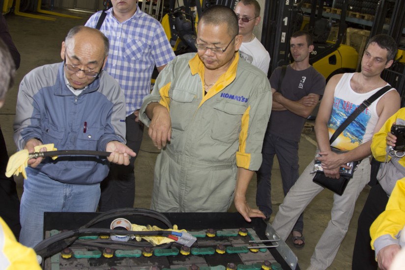 Большая часть практических занятий была посвящена электрическим погрузчикам, так как компания Комацу видит будущее именно за этим типом техники. С точки зрения сервиса, это действительно надежная и неприхотливая машина, с которой приятно работать. А наличие бортового компьютера позволяет без труда сделать полную компьютерную диагностику всех систем прямо перед началом обслуживания и вовремя заметить неисправность.»