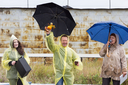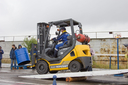 Третье задание конкурсантам пытался испортить дождь, сделав очень скользкой горку, на которую нужно было заехать на погрузчике. Но и с этим заданием справились опытные водители и надежная техника KOMATSU.