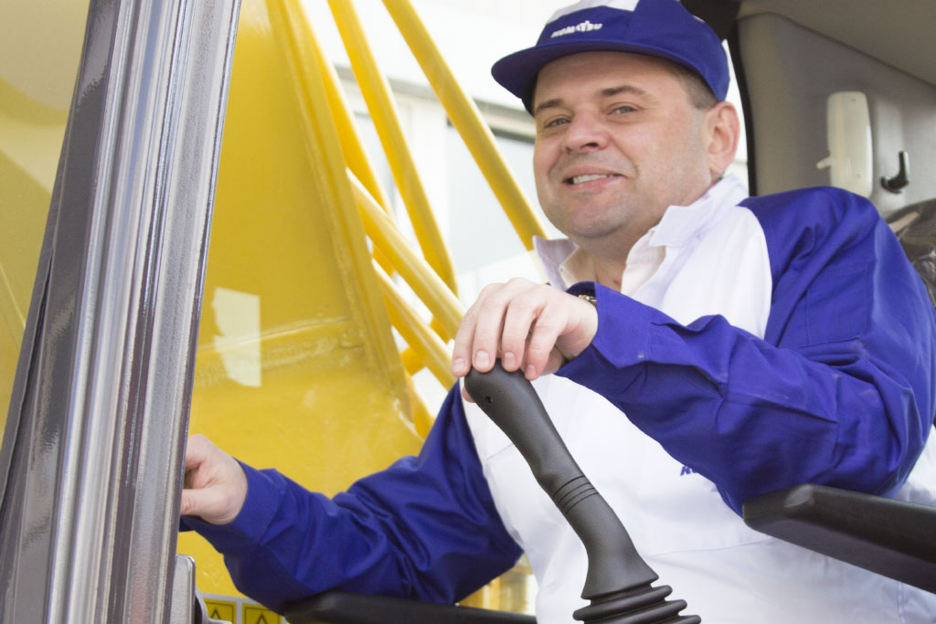 Это значит, что и исполнительному директору тоже нужно освоить профессию оператора. И вот Никита Владимирович торжественно управляет легким и маневренным РС300-8М0! Браво! У него это выходит здорово.