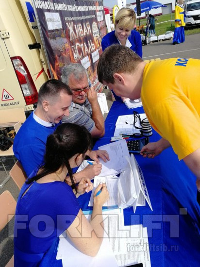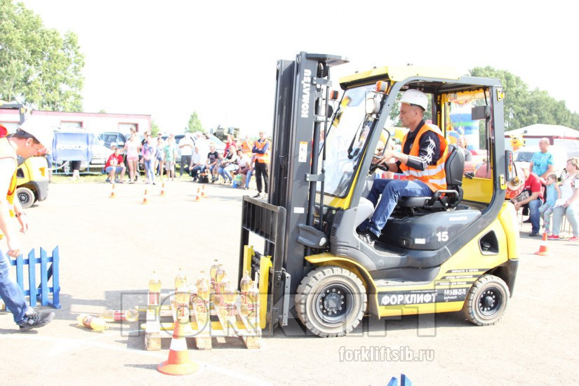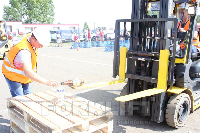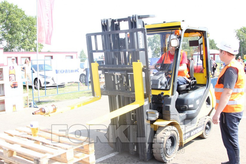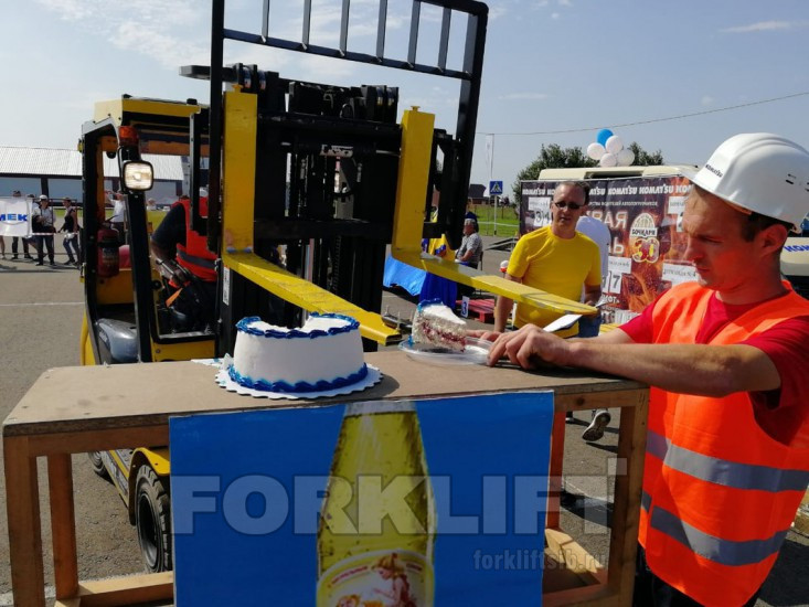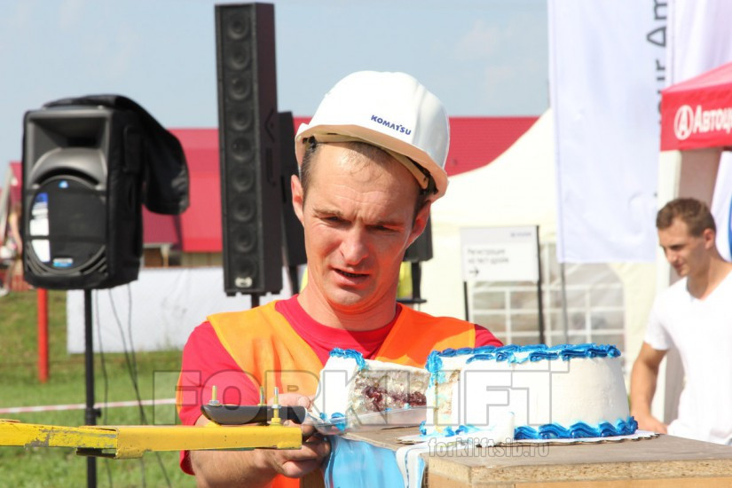 Перед участниками стояла задача с ювелирной точностью управлять тяжелой, но вместе с тем послушной техникой! И собирать пирамиду с бутылками лимонада, постоянно норовящими упасть, и отрезать и подать кусочек торта с помощью столовых приборов закрепленных на вилы погрузчиков KOMATSU. Финальным конкурсом стал, так полюбившийся болельщикам Живой стали, конкурс по наполнению бокалов пивом из бутылки закрепленной на вилах погрузчика.