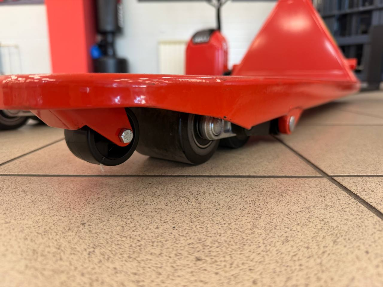 - Ведущие колеса и ролики на вилах сделаны из полиуретана — износостойкого материала, подходящего для любых напольных покрытий.